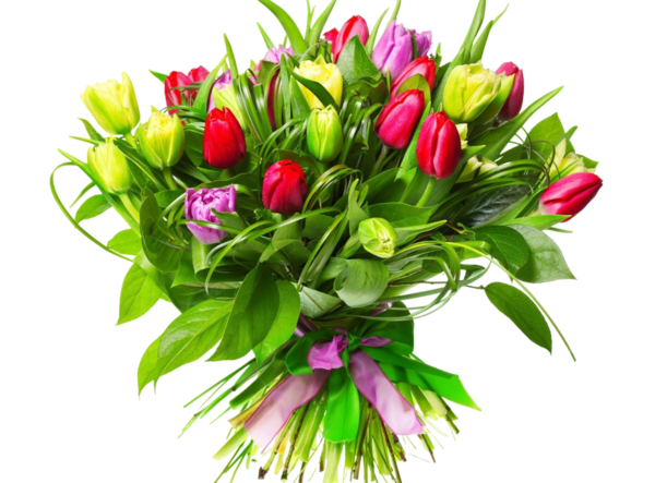 Színes tulpánok körcsokorban.