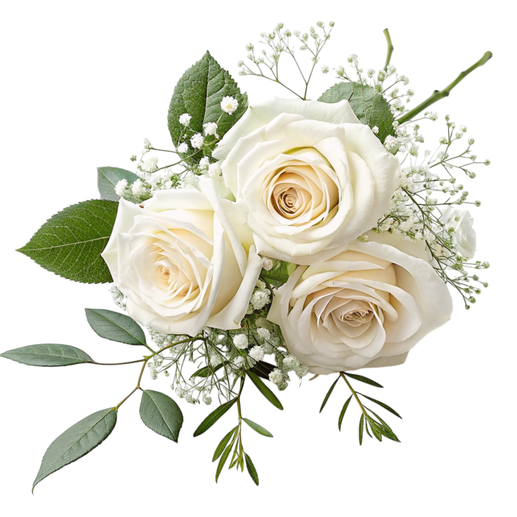 Menyaszonyi fehér rózsacsokor.